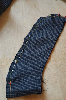 I wanted a standing collar but the neck opening was too wide. So I pieced it and used the just ripped out collar to narrow it.