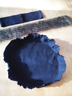 Ich wollte auch noch einen dazu passenden Bonnet und so entstand einer aus dem restlichen Kunstpelz und Baumwoll-Flanell.